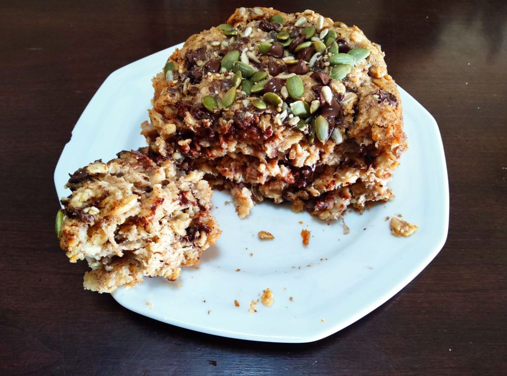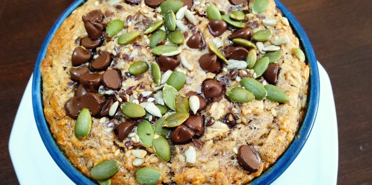 Cette recette polyvalente se mange à n’importe quelle heure de la journée. Grâce aux flocons d’avoine, elle est riche en fibres et en fer. Elle s’adapte à tous les types de régimes puisqu’elle est sans œuf, sans produit laitier et est naturellement sans gluten. Finalement, se prépare en quelques minutes et avec une facilité déconcertante en utilisant qu’un seul bol, le four fait le reste!