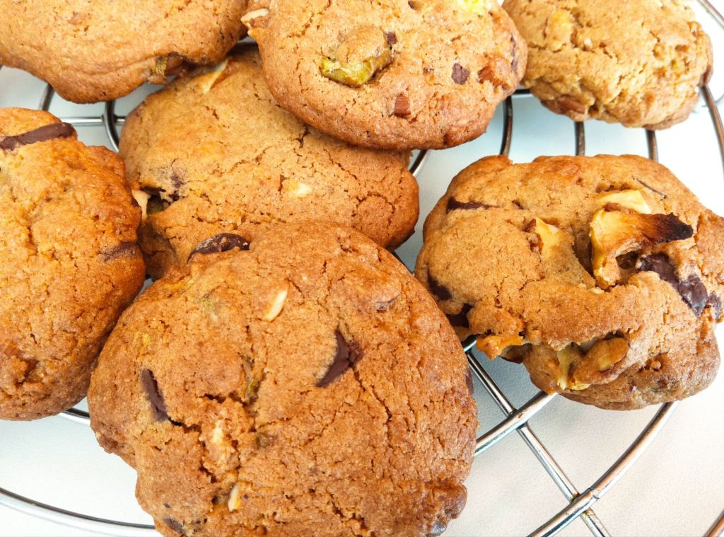 COOKIES pomme & poire confites, éclats d’amandes et pépites de chocolat