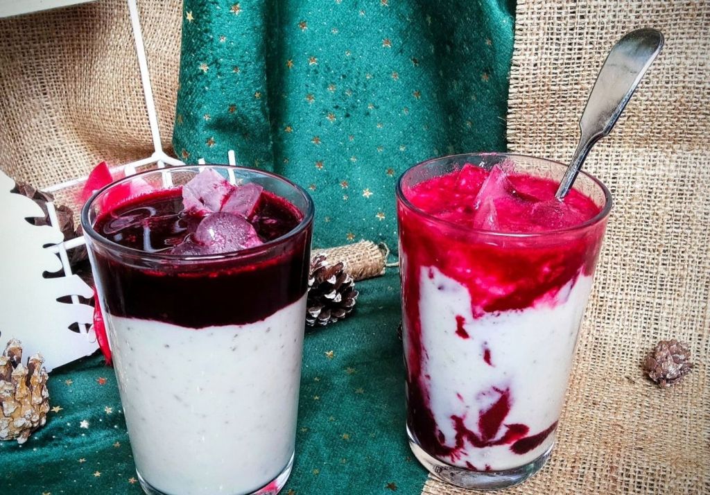 - Pour 1/4* of the flavored coconut cream into a glass, add ice cubes. Add about 100ml* of beetroot juice. Mix lightly and enjoy immediately.