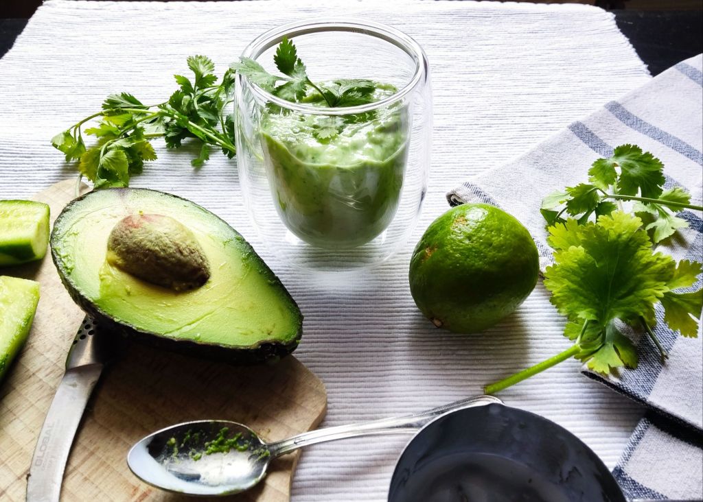 Smoothie Guacamole au lait fermenté ou Smoothie avec avocat, concombre, coriandre et citron vert.