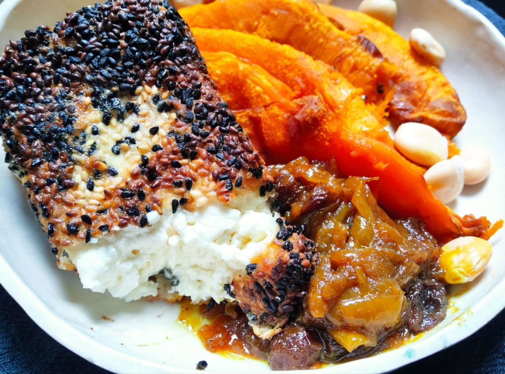 Seed-Crusted Feta, Roasted Pumpkin, and T’faya