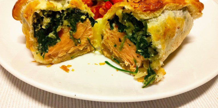 Continue reading “Sea Bass on Classic Ratatouille / Filet de Bar sur Ratatouille classique”Salmon, spinach, wild garlic and mascarpone QUICHE au saumon, épinards, ail des ours et mascarpone