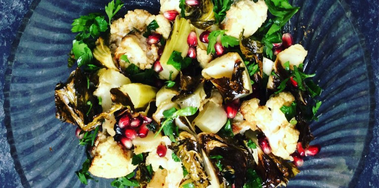 Fresh fennel, pomegranate arils, fresh herbs are the fresh, refreshing and crunchy ingredients of this salad. The quintessential winter salad is purslane. This seasonal salad stays fresh for a long time, despite the vinaigrette and the wait at the table. If you can’t find some, spinach leaves will be a good substitute.