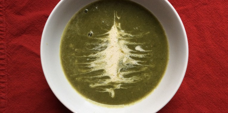 Pour bien commencer le repas de réveillon, pourquoi ne pas servir un potage vert remplis d’antioxydants et de vitamines avec une touche blanche pour souligner l’événement?