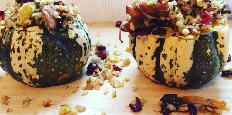 - Spoon over the top of the squash, dividing it equally between both halves.