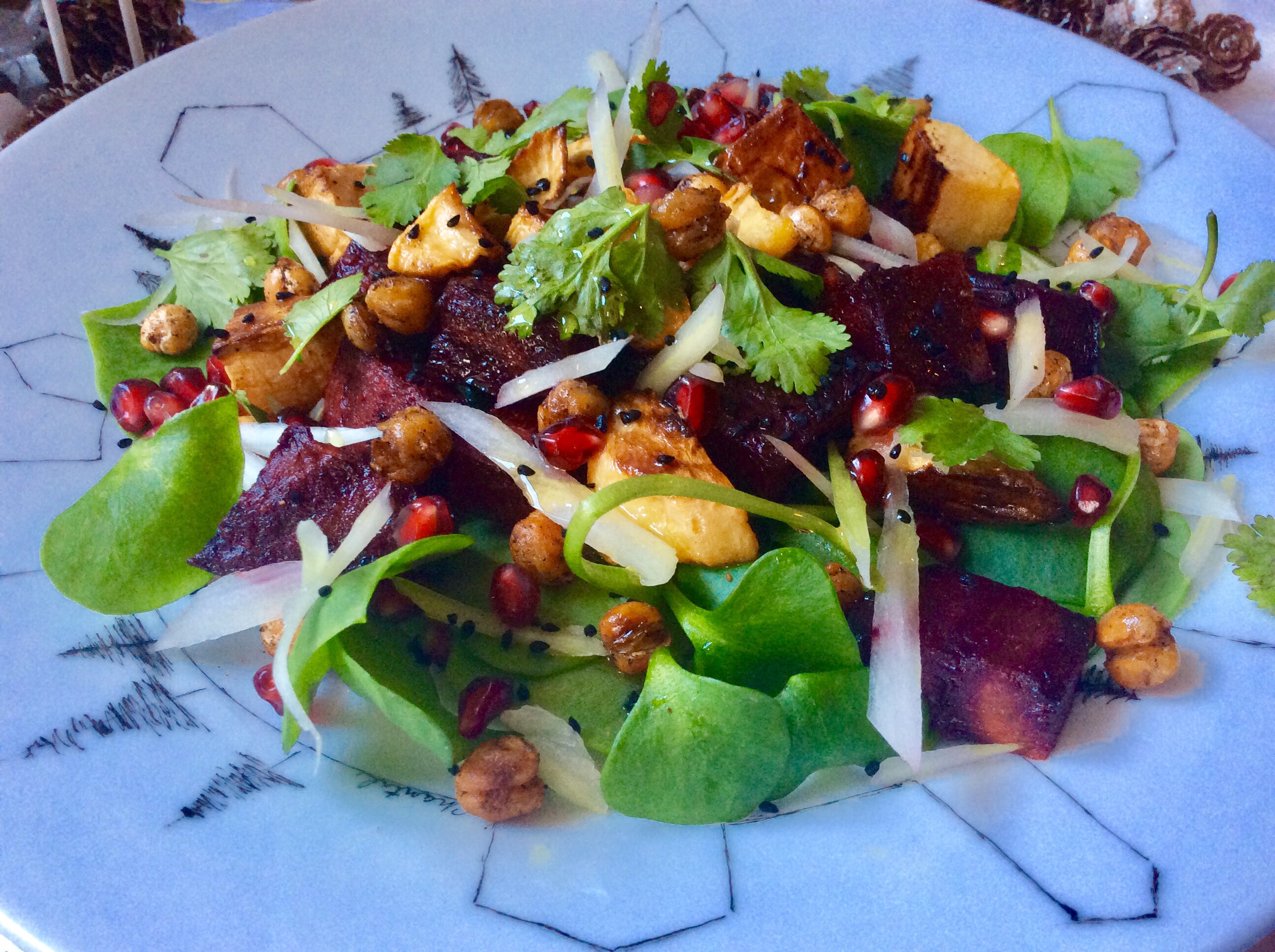 Roasted Beetroot and Rutabaga Purslane salad with Maple and Lime Vinaigrette