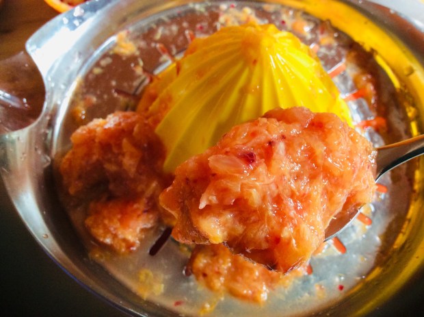 After the caramelized bananas, here is the caramelized pineapple! Hot, crispy, tangy sweet and, with the touch of yoghurt, creamy. A delight!